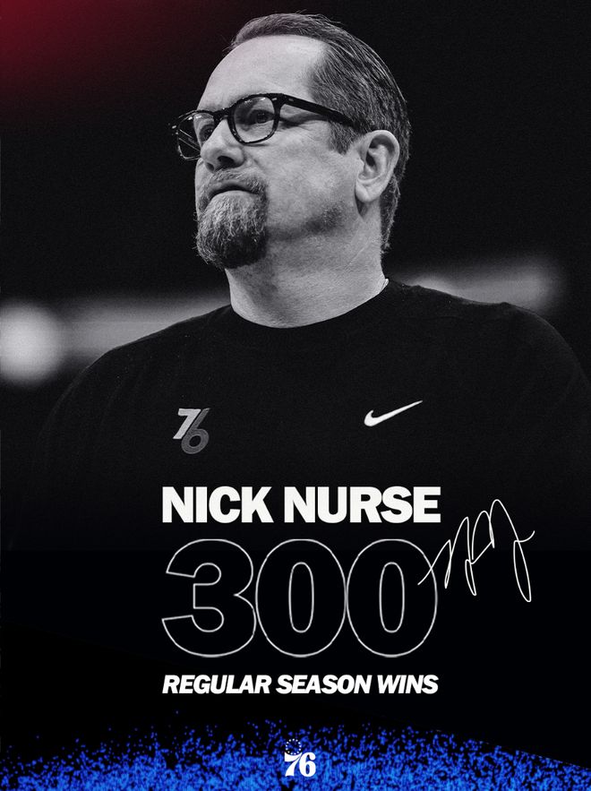 纳斯喜提执教生涯常规赛第300胜,76人官方发文祝贺
