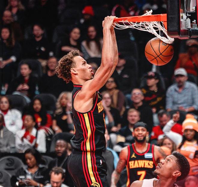 老鹰新赛季在后场核心特雷杨受伤的情况下,在鹰王杰伦约翰逊的率领下,打出了非常出色的整体表现,虽然上一场爆冷输给了东部垫底的华盛顿奇才,但最近10场常规赛仍然拿下了7场胜利。